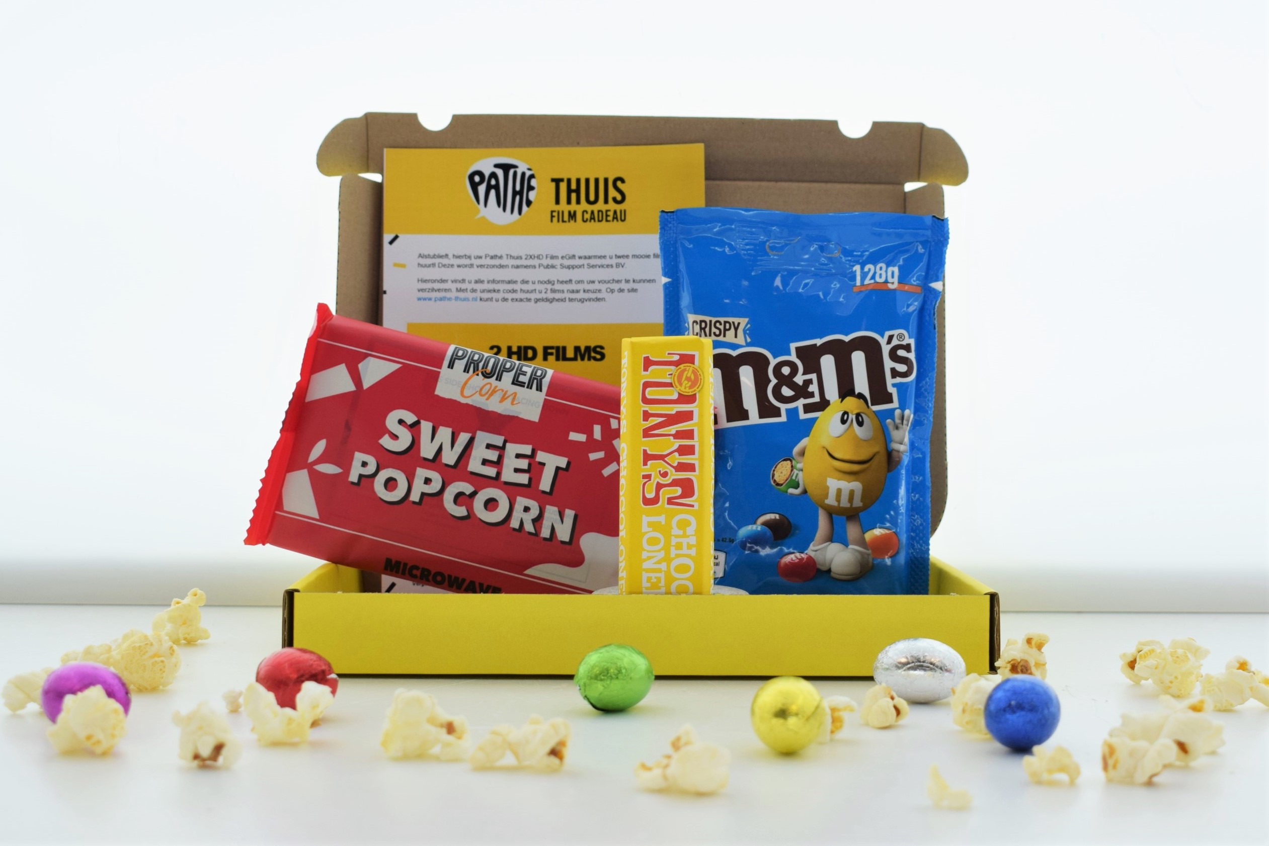 Brievenbusdoosje gevuld met een thuis bioscoop pakket:- Pathé thuis bon op te waarderen naar wens (vanaf € 5,99)