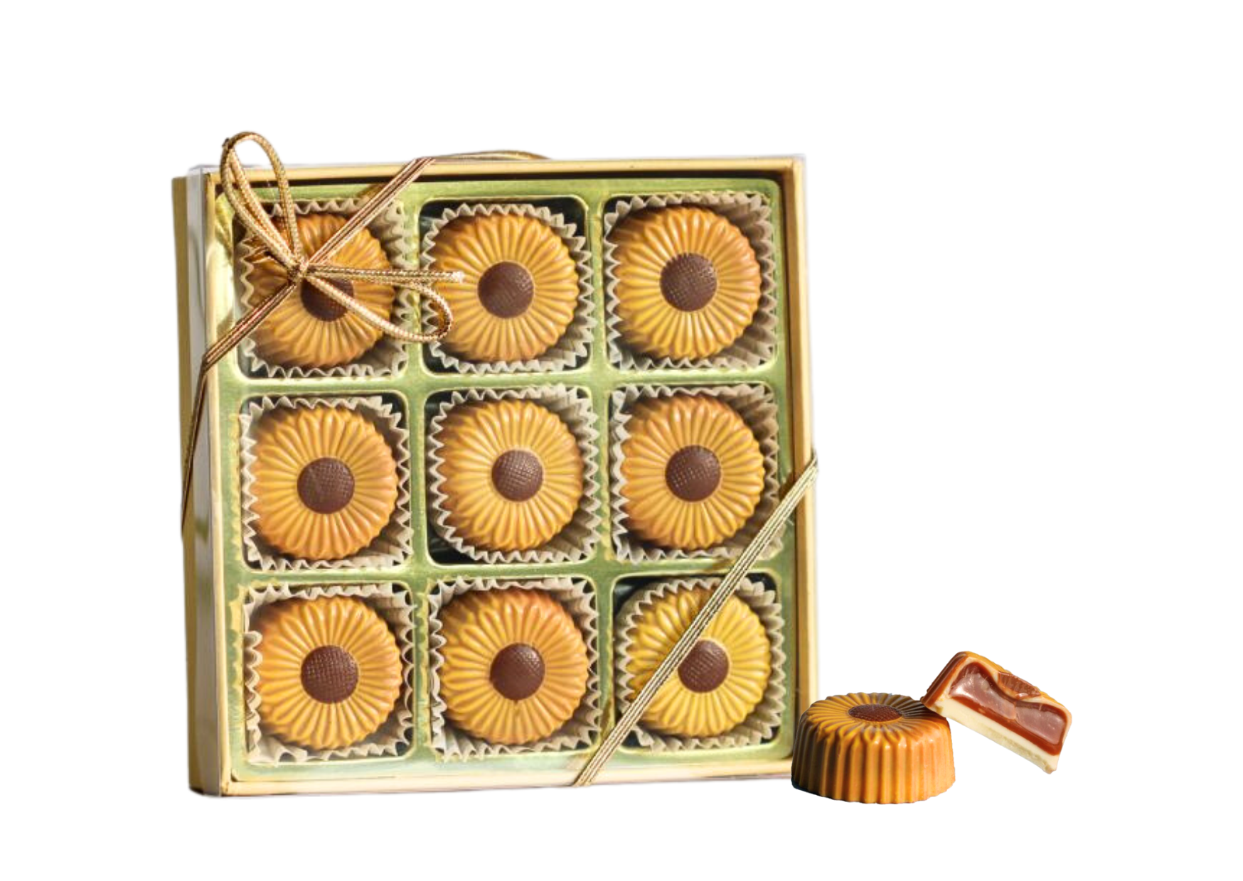 In plaats van een bosje bloemen geef je 9 heerlijke chocolade zonnebloemen, aangevuld met een kaarsje in blik met een speciale boodschap. Dit kaarsje is gemaakt door de makers van "Mooi door Mij". Deze makers hebben een (verstandelijke) beperking.- Chocolade bonbons